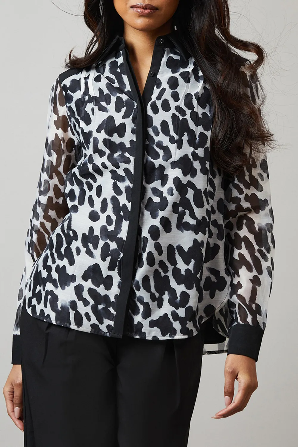 Make a statement with this eye-catching shirt that seamlessly blends wild style with refined elegance. The bold animal print pattern commands attention, while the contrasting solid collar and cuffs add a touch of sophistication. Perfect for casual daywear, this versatile piece can be styled in numerous ways to suit various occasions. Pair it with wide-leg trousers and flats for a chic family gathering look, or team it with your favourite jeans for a stylish brunch ensemble. The regular fit and woven fabric ensure all-day comfort, making it ideal for busy days out and about. For a more relaxed vibe, leave a few buttons undone and roll up the sleeves. This shirt is a true wardrobe staple that will inject a dose of personality into your everyday outfits.